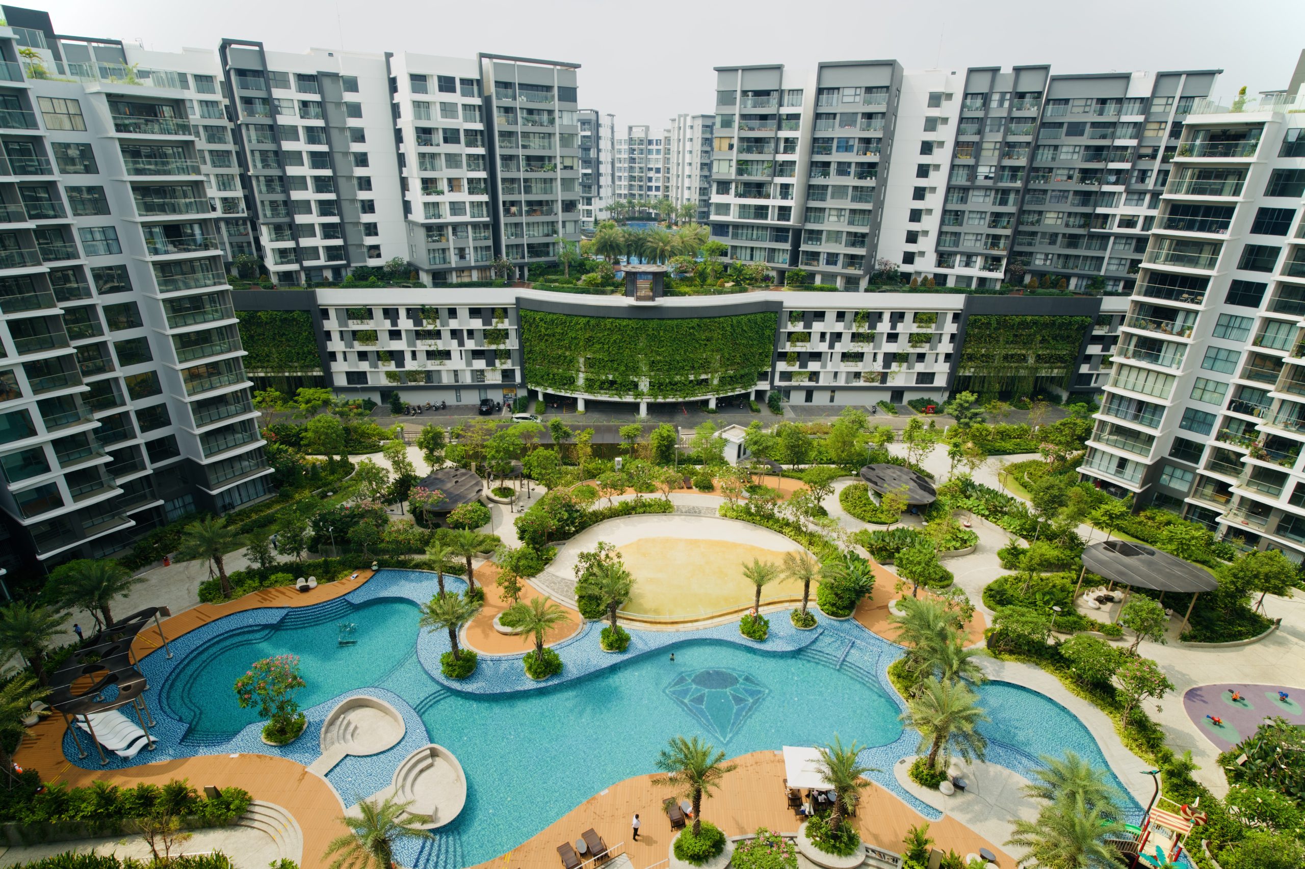 Hồ bơi tại phân khu Diamond Century view đẹp toàn cảnh nội khu của khu đô thị