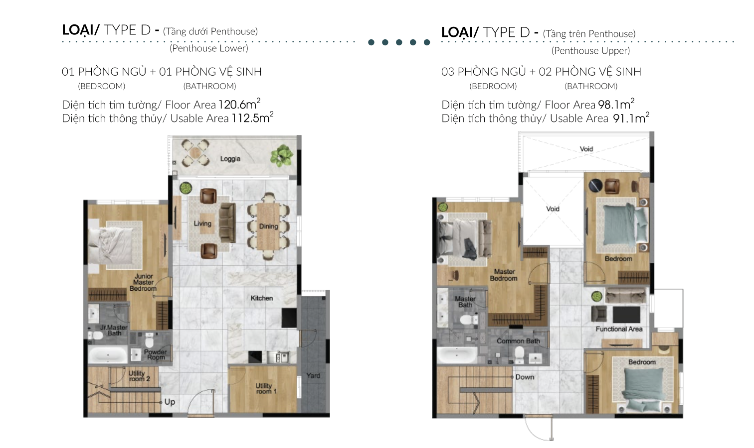 Thiết kế căn 2PN và 3PN phù hợp các hộ gia đình 2 đến 3 thế hệ